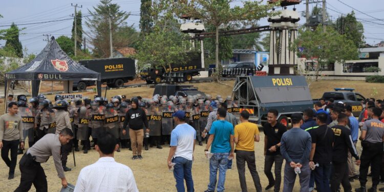 Lampung Utara – Polres Lampung Utara menggelar latihan dalmas dalam rangka kesiapan menjelang Operasi Mantap Brata 2023 yang dilaksanakan di halaman mapolres setempat, Sabtu (7/10/23).