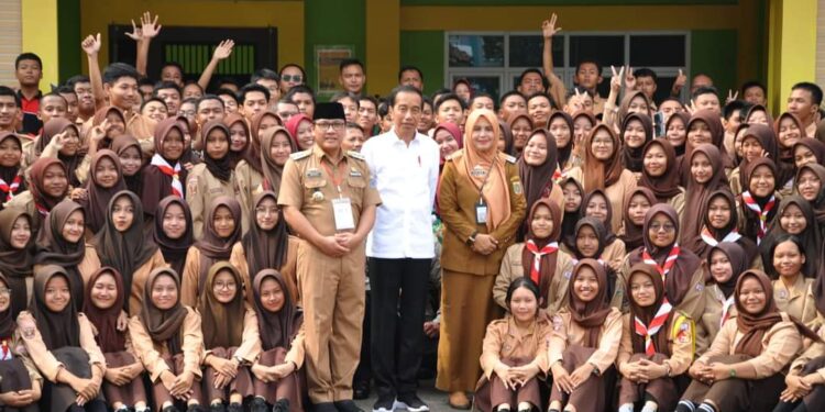 Metro — Presiden Republik Indonesia, Joko Widodo bersama Gubernur Lampung Arinal Djunaidi melakukan peninjauan fasilitas pendidikan di Sekolah Menengah Kejuruan (SMK) Negeri 3 Kota Metro, Jum’at (27/10/2023).