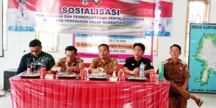 Kegiatan penyuluhan Anti Narkotika yang di selenggarakan oleh Badan Kesatuan Bangsa dan Politik Kabupaten Way Kanan, mengambil tema ” Keluarga Hebat Sehat tanpa narkoba Way Kanan Bersinar unggul dan Sejahtera.