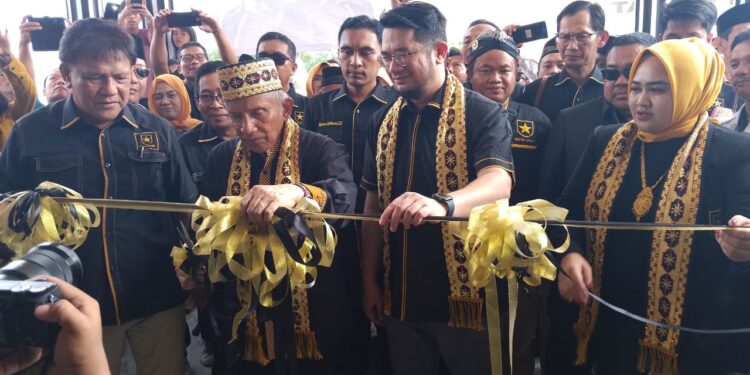 Tulangbawang-Ketua Majelis Syuro DPP PU Prof. Dr. Amien Rasis didampingi Ketua Umum DPP DR. Ridho Rahmadi meresmikan langsung gedung DPD Partai Ummat Tulangbawang yang berada di Jalan Lintas Timur, Kecamatan Menggala, Rabu (15/11/2023).