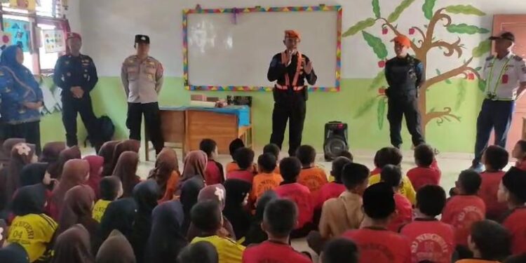 Lampung Utara – Polisi Khusus Kereta Api (Polsuska) wilayah B Drive IV Tanjung Karang bersama Sat Binmas Polres Lampung Utara dan Kasi keselamatan Dishub Lampung Utara melalukan Sosialisasi Keselamatan dan Keamanan Perjalanan Kereta Api dan perlintasan sebidang di SDN 4 Kotabumi Udik, Jumat (17/11/23).