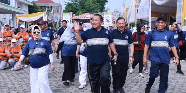 Bandar Lampung — Gubernur Lampung Arinal Djunaidi melepas Peserta Lomba Jalan Sehat Dalam rangka Hari Kesehatan Nasional ke-59 di halaman Kantor Dinas Kesehatan Provinsi Lampung, Minggu (19/11/2023).