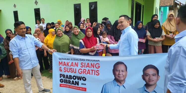 PESAWARAN — Tim Kampanye Daerah (TKD) Pesawaran, pasangan Capres-Cawapres Prabowo-Gibran, dipimpin langsung oleh Gilang Ramadhan, membagikan seribu paket nasi kotak dan susu gratis. Program kampanye perdana itu digelar di lima titik di daerah berjuluk Andan Jejama itu.