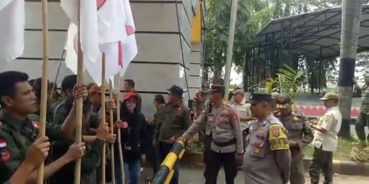 Bandar Lampung,-Provinsi Lampung. Lembaga Swadaya Masyarakat Triga Nusantara Indonesia.(LSM Trinusa). Tergabung Bersama Dengan Gerakan Masyarakat Menggugat.(Geram). Menggelar Aksi Damai di depan kantor Gubernur Lampung. hari kamis (30/11/2023).
