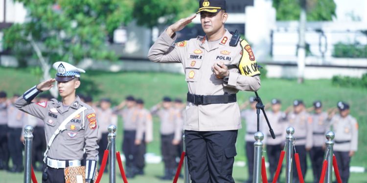 Upacara tersebut langsung di pimpin oleh Kapolres Lampung Utara AKBP Teddy Rachesna, S.H., S.I.K., M.Si. dengan dihadiri Pejabat Utama (PJU) dan personel Polres Lampung Utara.