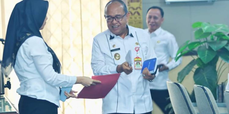 Lampung UtaraI – Sekretaris Daerah (Sekda) Kabupaten Lampung Utara Drs. Lekok, M.M., menyerahkan Laporan Hasil Pemeriksaan (LHP) Tahun Anggaran 2023 kepada seluruh jajaran Kepala Perangkat Daerah.