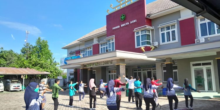 GERBANG SUMATERA 88- Dinas Kesehatan Kabupaten Tulangbawang Barat (Tubaba) menggelar senam bersama dengan Petugas Pemilihan Umum (Pemilu) tahun 2024.