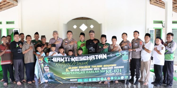 Tuba,-Seksi Dokkes Polres Tulang Bawang, Polda Lampung, berkolaborasi dengan Majelis Pimpinan Cabang Nahdlatul Ulama (MPCNU) Banjar Agung menggelar bakti kesehatan berupa khitanan massal gratis.