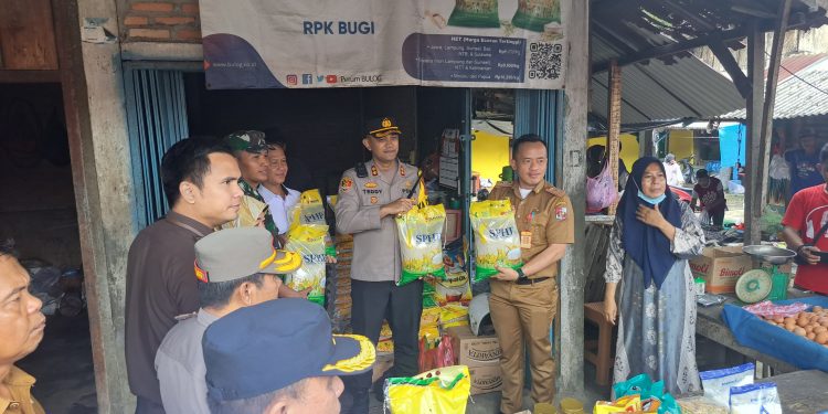 Lampung Utara – Menjelang Puasa Ramadhan, Kapolres Lampung Utara AKBP Teddy Rachesna, S.H., S.I.K., M.Si. bersama Forkopimda Lampung Utara mengecek ketersedian beras di gudang Bulog serta memantau harga kebutuhan pokok masyarakat di Pasar Central, Rabu (20/2/24).