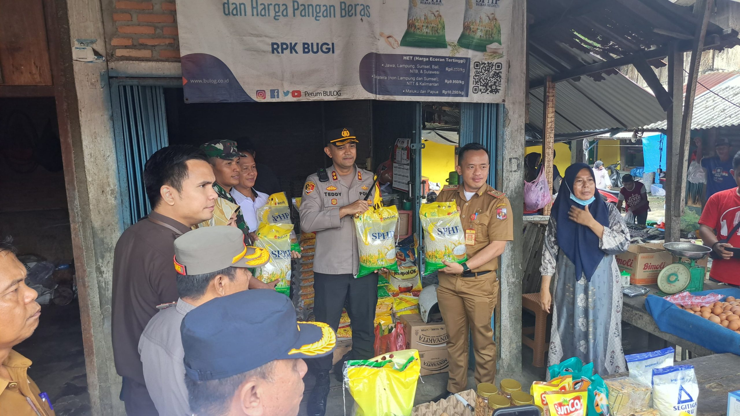 Lampung Utara – Menjelang Puasa Ramadhan, Kapolres Lampung Utara AKBP Teddy Rachesna, S.H., S.I.K., M.Si. bersama Forkopimda Lampung Utara mengecek ketersedian beras di gudang Bulog serta memantau harga kebutuhan pokok masyarakat di Pasar Central, Rabu (20/2/24).