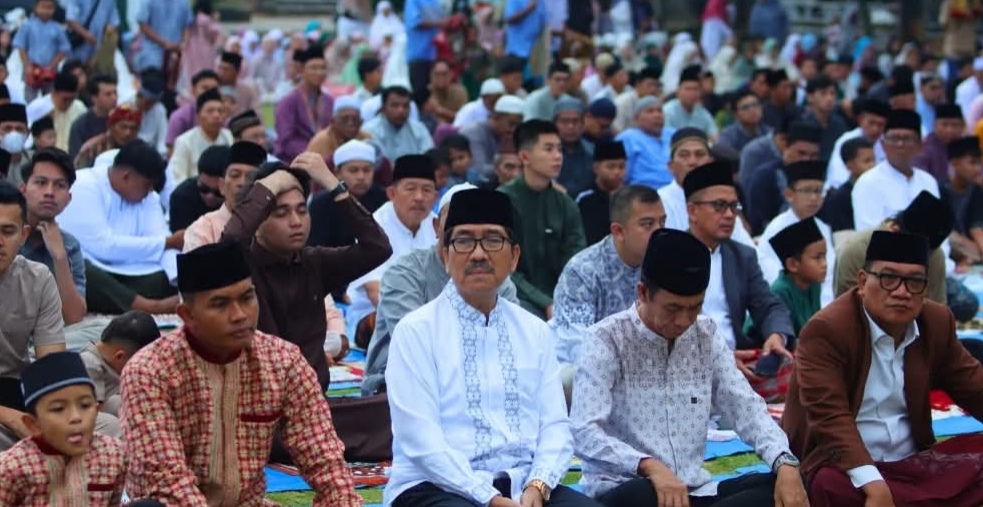 Lampung Utara, – Dalam rangka merayakan Hari Raya Idul Fitri 1445 H, Pemerintah Kabupaten Lampung Utara menggelar Sholat Ied berjamaah yang berlangsung khidmat di halaman Pemda Lampung Utara, pada Senin, 31 Maret 2025. Acara ini dihadiri oleh Bupati Lampung Utara, Dr. Ir. H. Hamartoni Ahadis, M.Si., Wakil Bupati Romli, S.Kom., S.H., M.H., jajaran Forkopimda, serta masyarakat setempat.