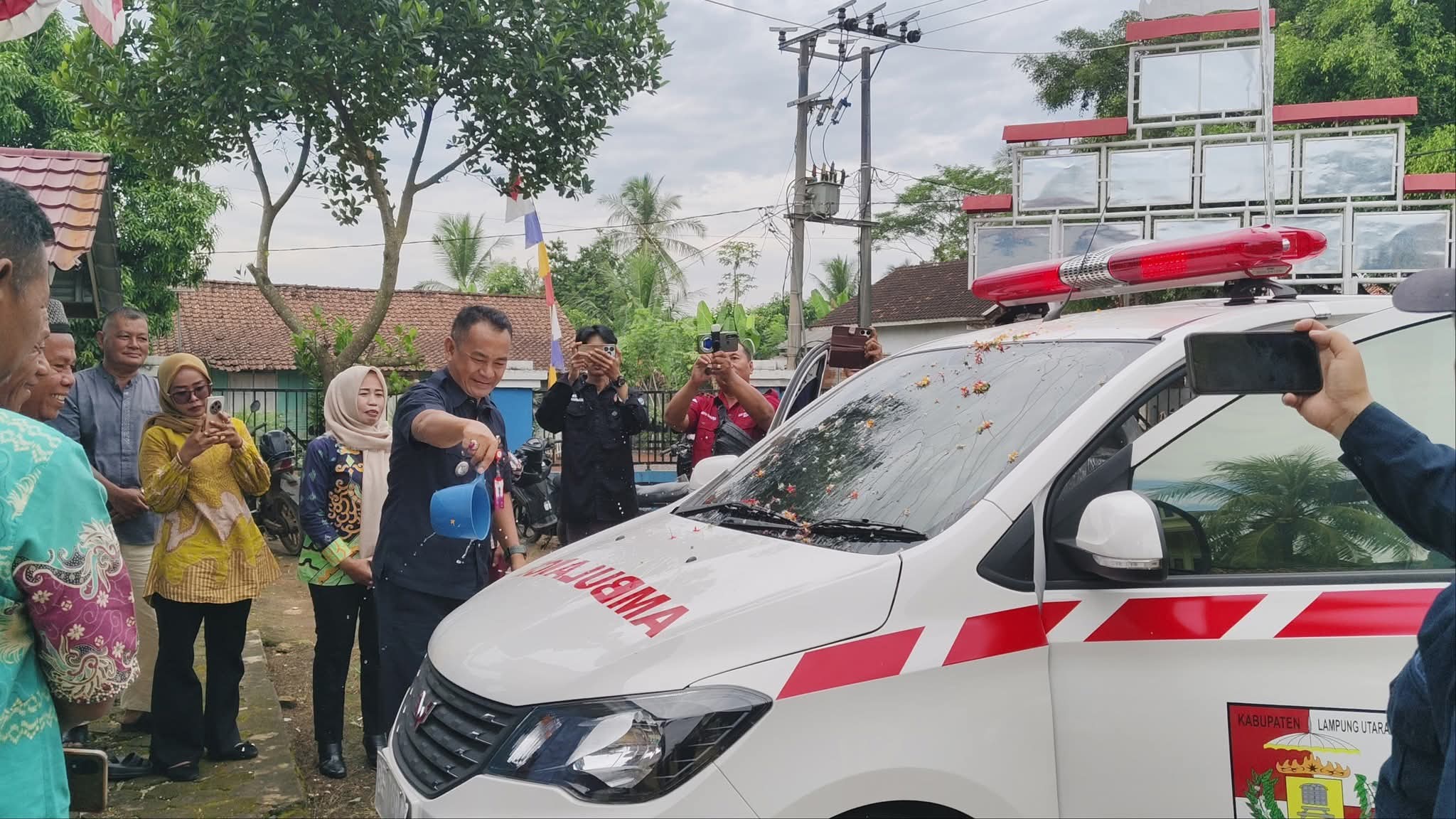 Lampung Utara,- Penjabat Kepala Desa Kinciran sekaligus Camat Abung Tengah Kasim, S.E.,M.M. Realisasikan Belanja Kendaraan Roda Empat berupa Ambulance melalui Dana Desa Tahun 2025, di Halaman Kantor Desa Kamis 3 Juli 2025.