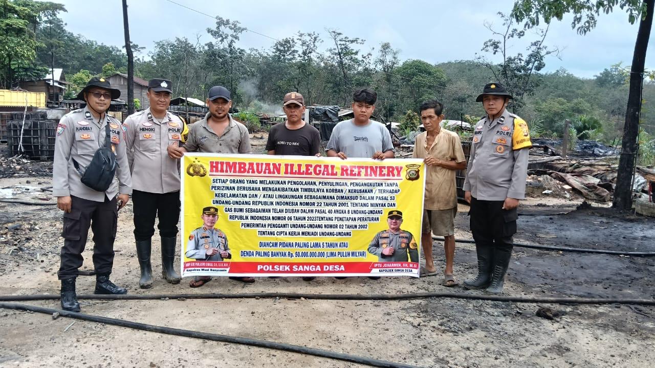 Sebagai bentuk komitmen dalam memberantas kegiatan ilegal refinery, Polsek Sanga Desa telah memasang sejumlah spanduk imbauan di lokasi-lokasi yang diduga menjadi tempat aktivitas ilegal tersebut.
