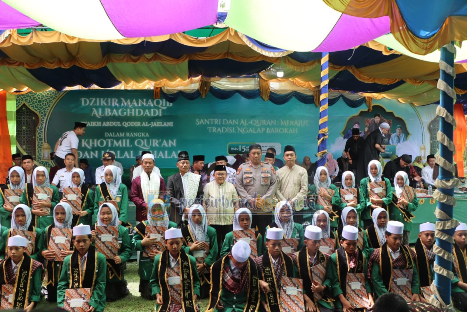 Lebih lanjut, Wabup menegaskan bahwa kegiatan Khotmil Al-Qur’an dan dzikir manaqib Syekh Abdul Qadir Al-Jailani merupakan momen penting untuk memperkuat kecintaan terhadap Al-Qur’an dan menjadi teladan akhlak para ulama.